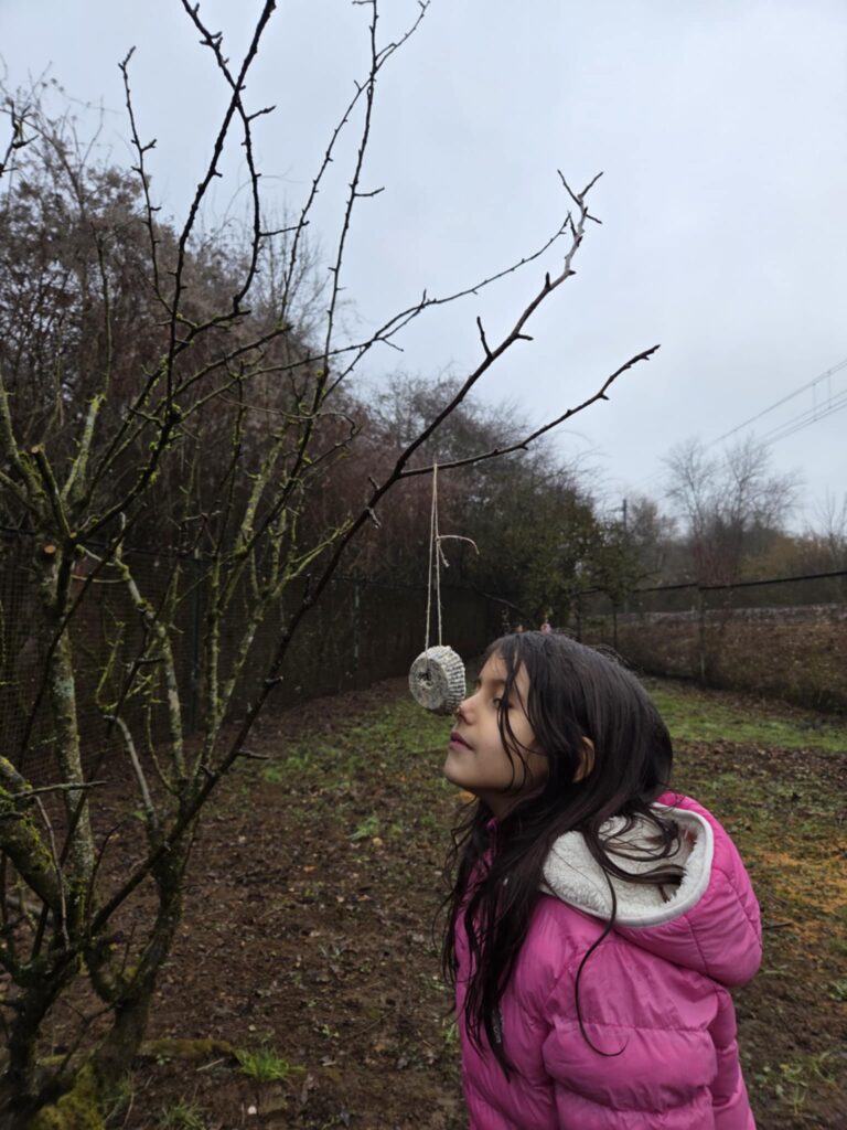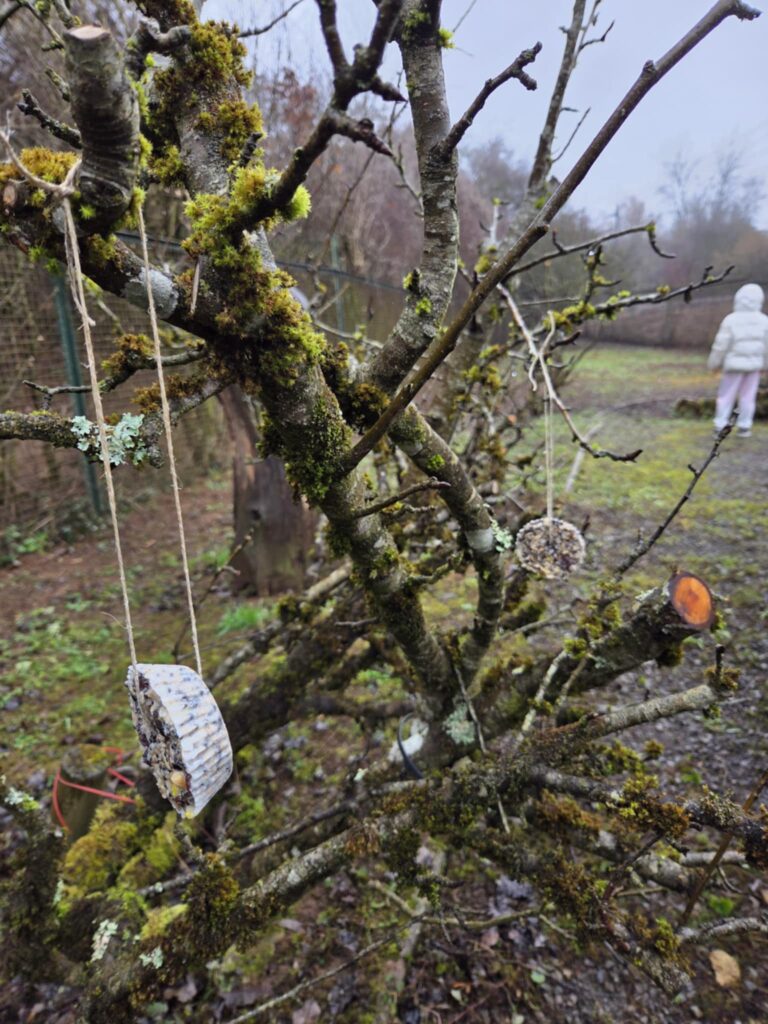 Les enfants ont également reçu un biscuit à emporter chez eux pour le suspendre dans leur jardin ou sur leur balcon, et certains ont été accrochés dans la cour de l’école.
