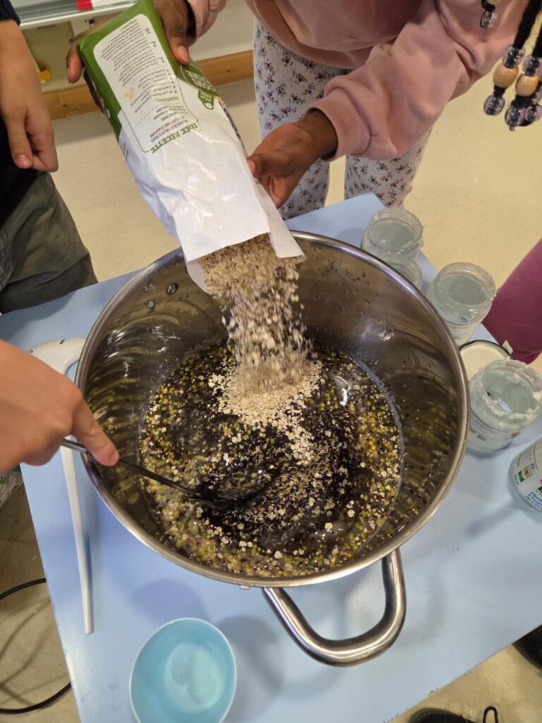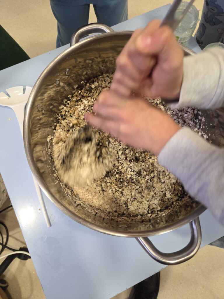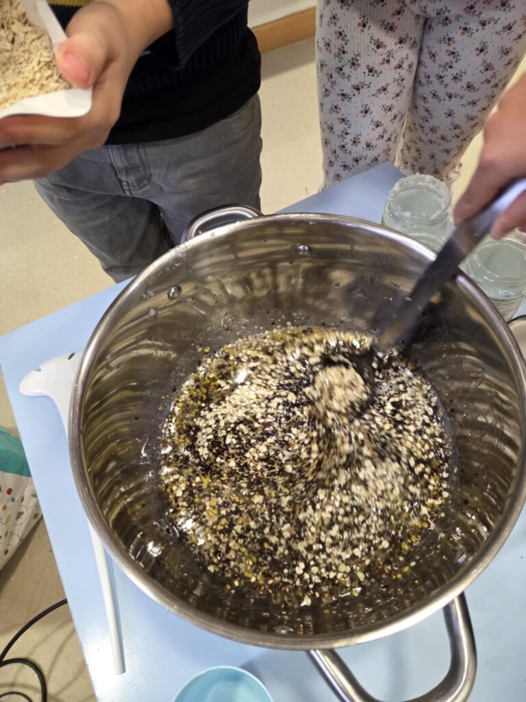 Lors de l’atelier, les enfants ont pu apprendre à connaître les différents oiseaux qui restent au Luxembourg en hiver. Nous avons découvert ce que les oiseaux mangent et ce qu’ils ne mangent pas. Pour leur faciliter l’hiver, nous avons préparé des biscuits pour oiseaux que nous avons ensuite accrochés dans le jardin scolaire.