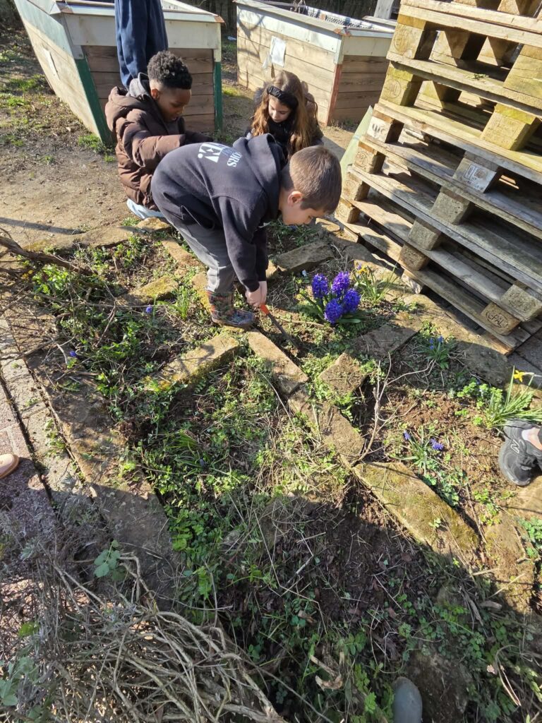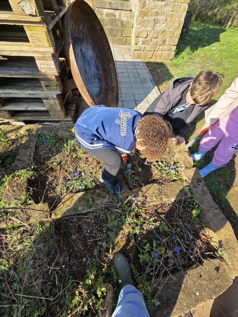 Mir hu d’Blummebeet gebotzt fir néi Blummen ze setzen. De Schoulmeeschter Joé Decker (C 2.2) huet e Beet matt senger Klass gebaut an ugeplanzt.