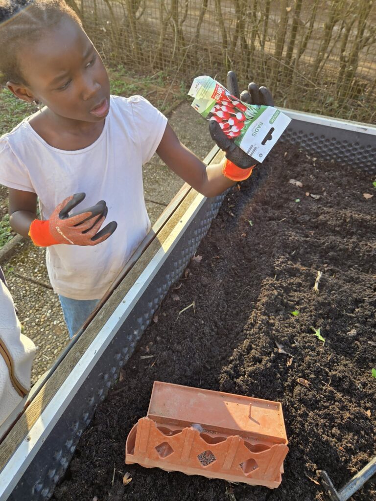 Nous avons lu le livre « Sam sème un tournesol » et avons planté des tournesols en classe que nous pourrons replanter plus tard dans le jardin.
