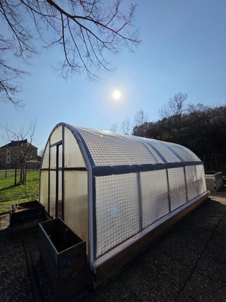 – d’Gewächshaus krut eng nei Folie / la serre a reçu une nouvelle bâche